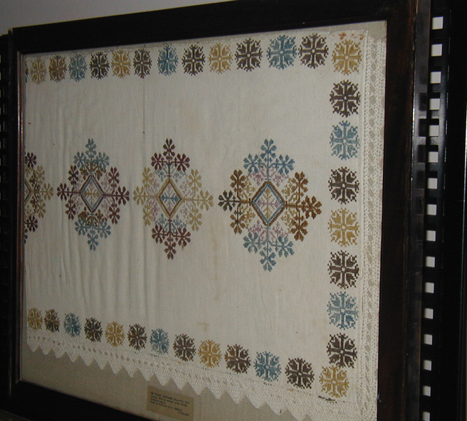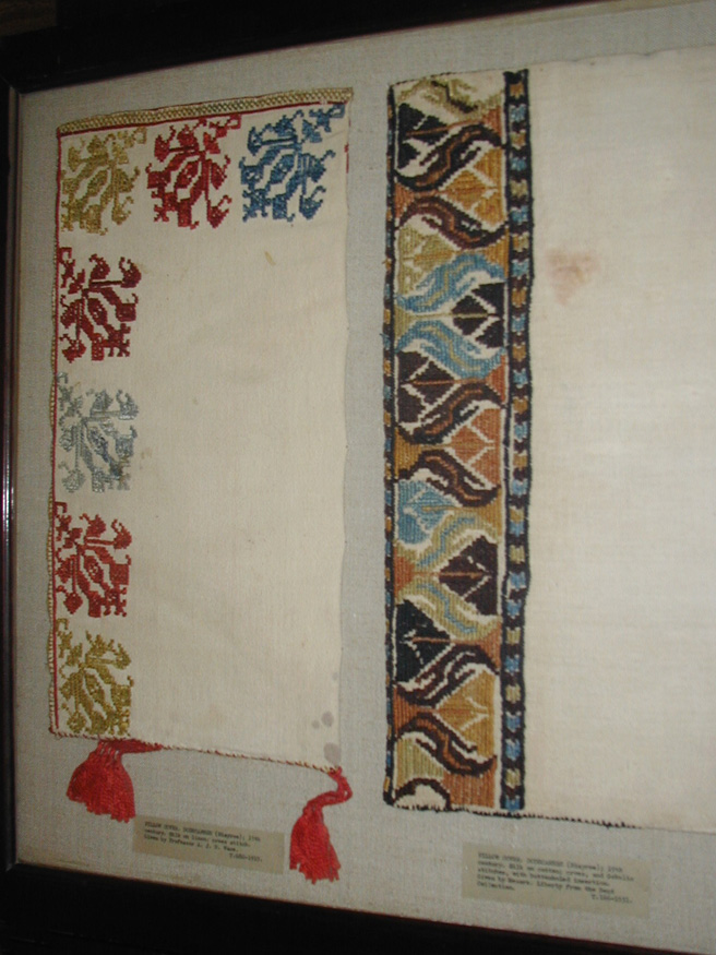 In the Victoria and Albert Museum at South Kensington, London, at the Textiles and Embroideries Department (on the mezzanine), three embroideries from Nisyros are exhibited. The photos are taken by Maria K. Chartofyli by the courtesy and the assistance of the Museum’s Management, whom we thank once again. Two of the donors, Professors R.M. Dawkins and A.J.B. Wace, who had visited Nisyros, had a strong friendship with our compatriot doctor and folklorist late G. Kazavis.