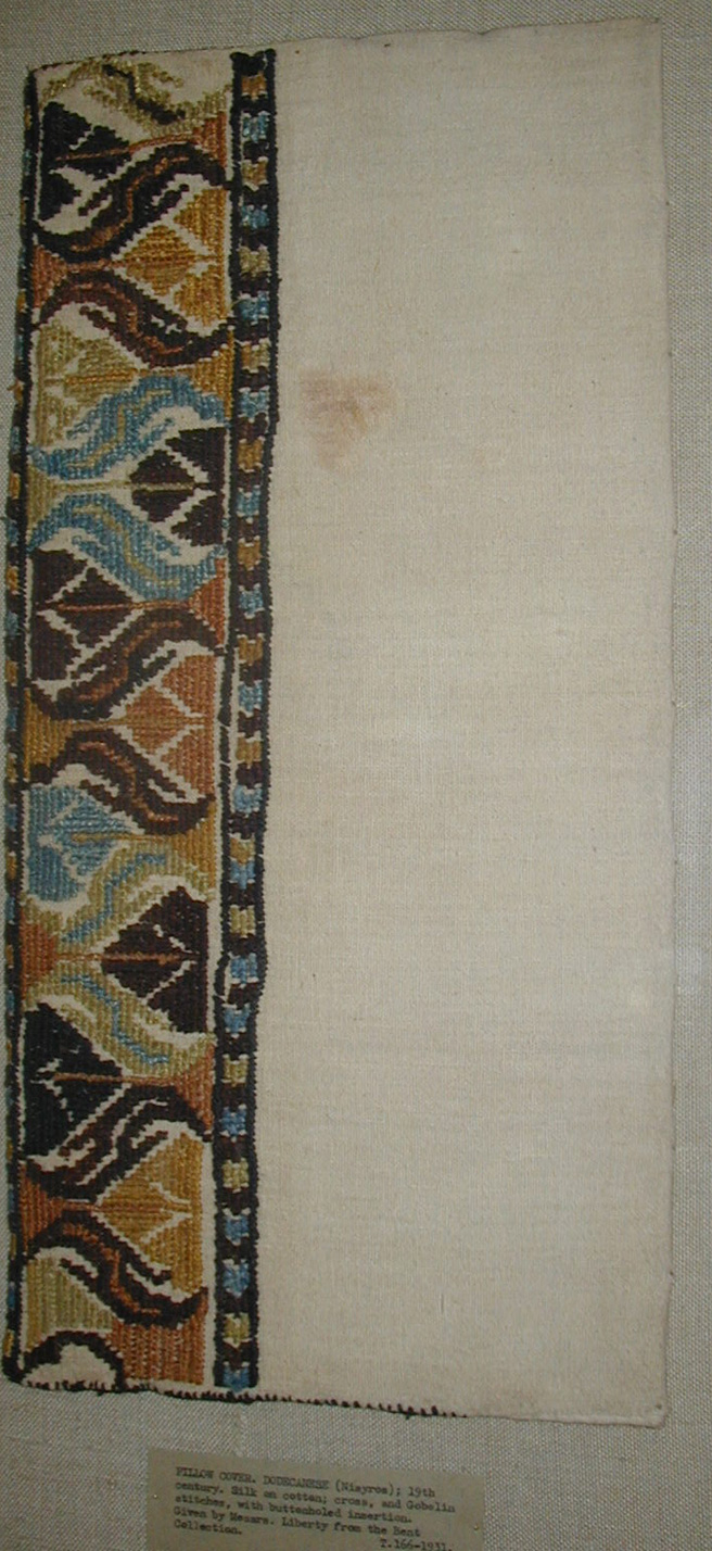 The third embroidery is from Emborios of Nisyros and was bought by the pair of English archaeologist Theodore and his wife Mabel Bent during their visit to Nisyros in 1885.